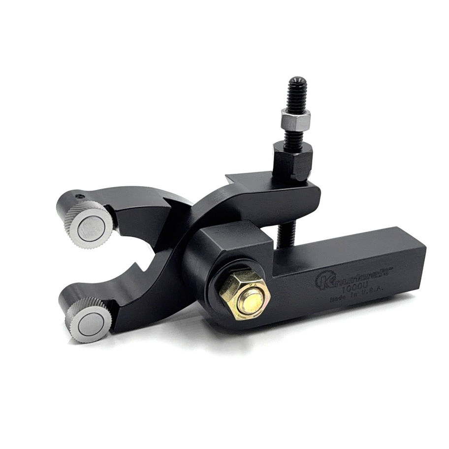 Knurlcraft™ Heavy Duty Scissor Type Knurling Tool. Featuring Counterbored knurls to accommodate a wide variety of jobs. Knurling pressures are absorbed by the tool not your bed, compound, centers or feed screw. The Knurls are quickly and easily replaced while still in your machine to minimize down time. Tool strength has been greatly increased to endure even your worst CNC application. Our exclusive CNC shanks are a solid, one piece construction that are offset to allow for virtually no turret overhang of the knurl. Each tool includes one set of Medium pitch, Diamond pattern knurls.